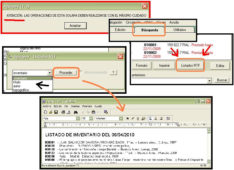 Laura: Tal vez no estoy entendiendo bien pero en la pestaña Utilitarios hay una opción para hacer listados ordenados por inv, título, autor o topográfica según elijas. Se puede guardar el archivo y también imprimir. Espero que te sirva de ayuda Mabel