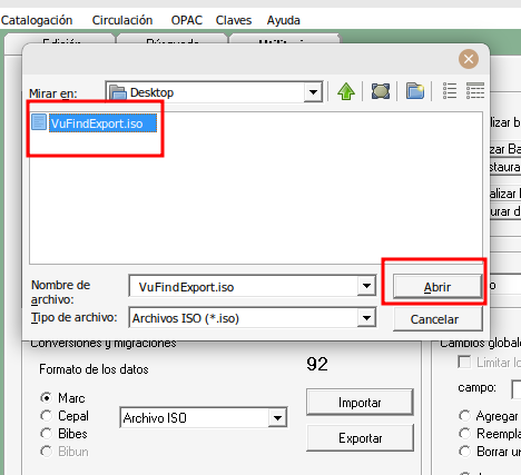 Hola, lo tenes que bajar/exportar desde el catalogo como "Exportar a ISO2709"